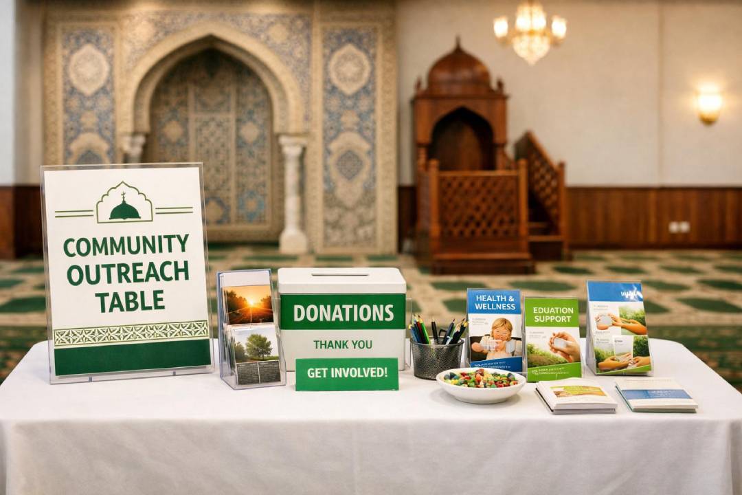 Community outreach tables provide an opportunity to share beneficial services, educational resources, and causes that uplift and serve the wider community. All requests are reviewed to ensure they are appropriate, respectful, and consistent with the mission of the Masjid.